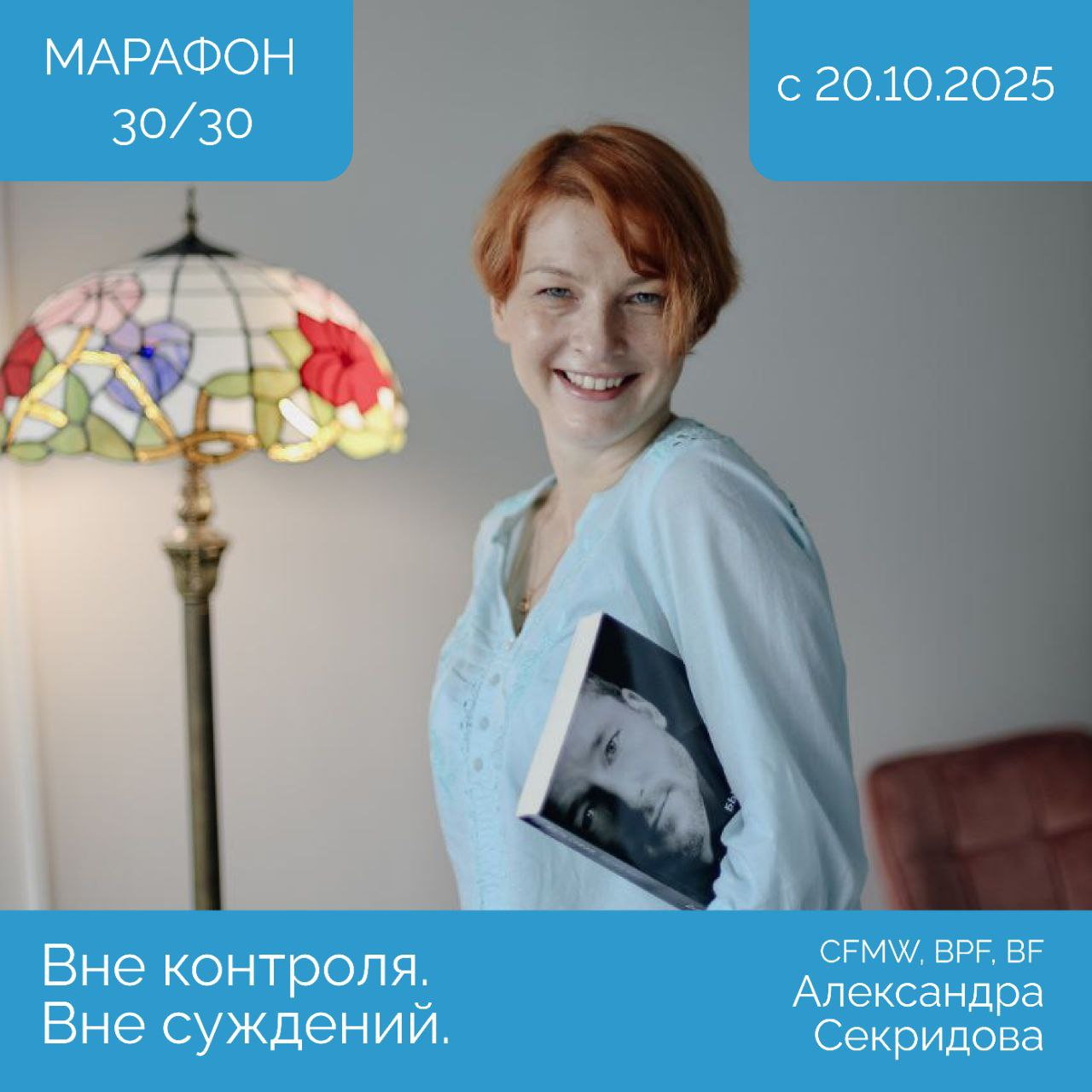 я, CFMW, BPF, BF Александра Секридова, хочу пригласить вас на свой марафон 30/30 "Вне контроля. Вне суждений", который стартует в понедельник, 20-ого октября.