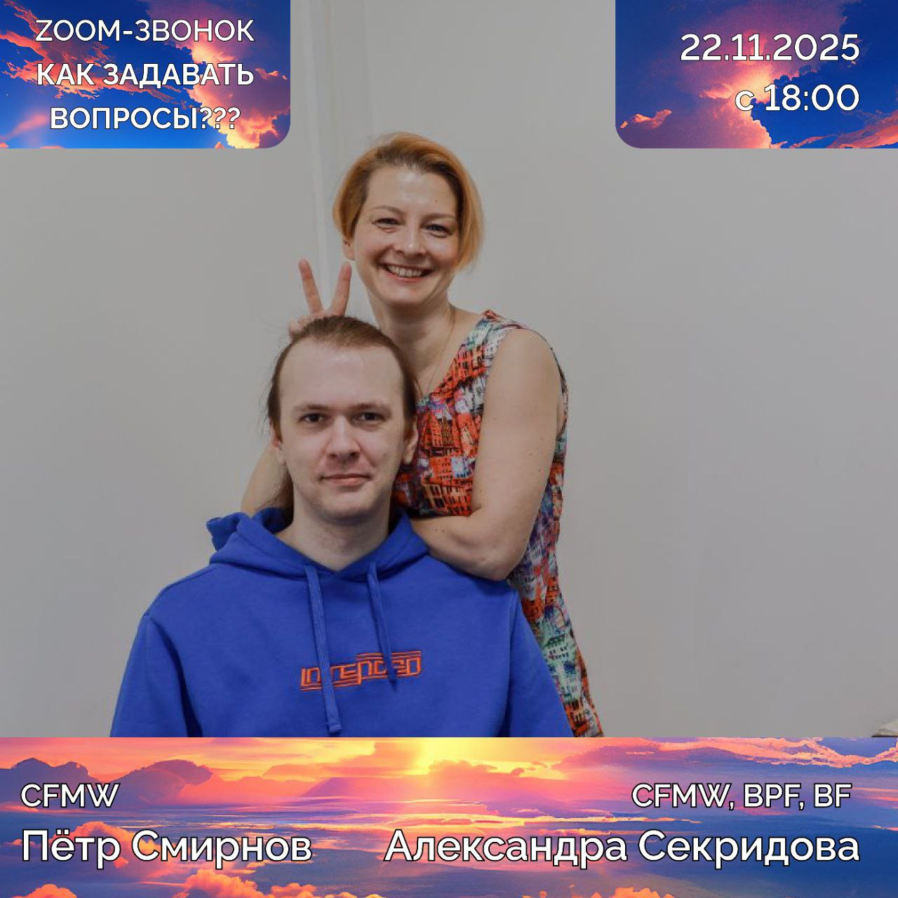 🗝️22 ноября, в субботу, в 18:00 мы, CFMW Пётр Смирнов и CFMW, BPF, BF Александра Секридова, проведем для вас зум-звонок "Как задавать вопрос???"