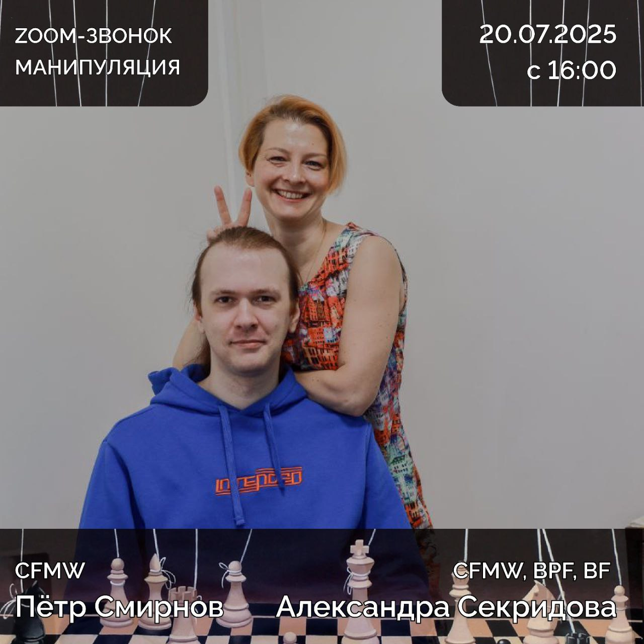 🌵20 июля, в воскресенье, в 16:00 мы, CFMW Пётр Смирнов и CFMW, BPF, BF Александра Секридова, проведем для вас зум-звонок "Манипуляция".