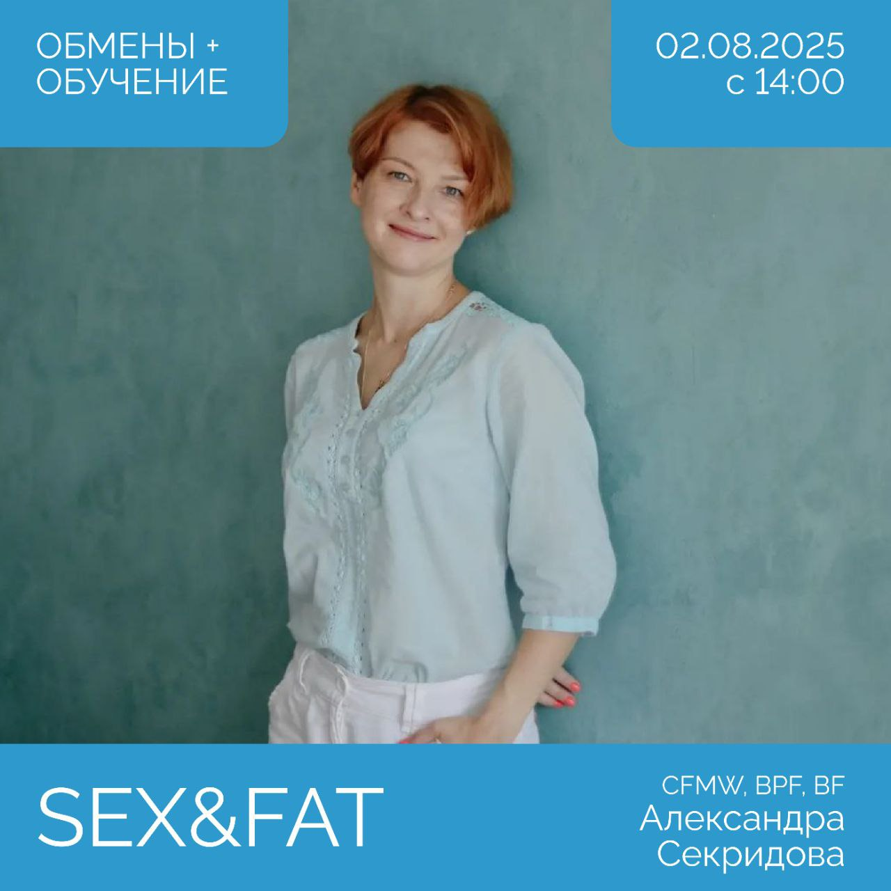 🐝2 августа, в субботу, с 14:00 обмены и обучение телесному процессу "S.E.X. & F.A.T" с CFMW, BF, BPF Александрой Секридовой.